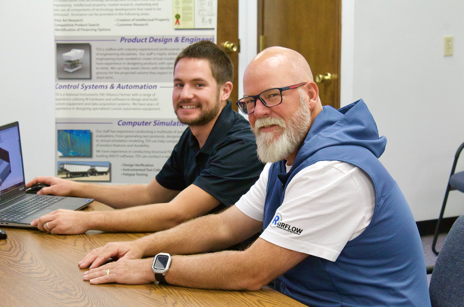 Quinton Berggren, senior engineer at the Kansas State University Technology Development Institute (TDI), and Win Hansen, president and CEO of Rairflow