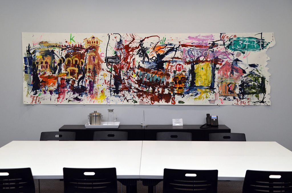 The result was a panoramic cityscape of Kansas City, splashed with color — now hanging prominently in the Nonprofit Village’s conference room.
