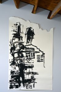 “I couldn’t hire a model, but I really needed to practice figures,” she said. “I noticed the people at bus stops — they’re completely unposed because they’re just there waiting. So I would sneak a picture of them. Driving down Main, they have the best bus stops. ‘Click! Click! Click!’ I’ve gotten really good at it.”