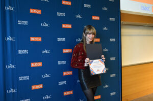 Dr. Brandy Archie, AskSAMIE, center, accepts her second place award at UMKC’s RVCC; photo by Nikki Overfelt Chifalu, Startland News