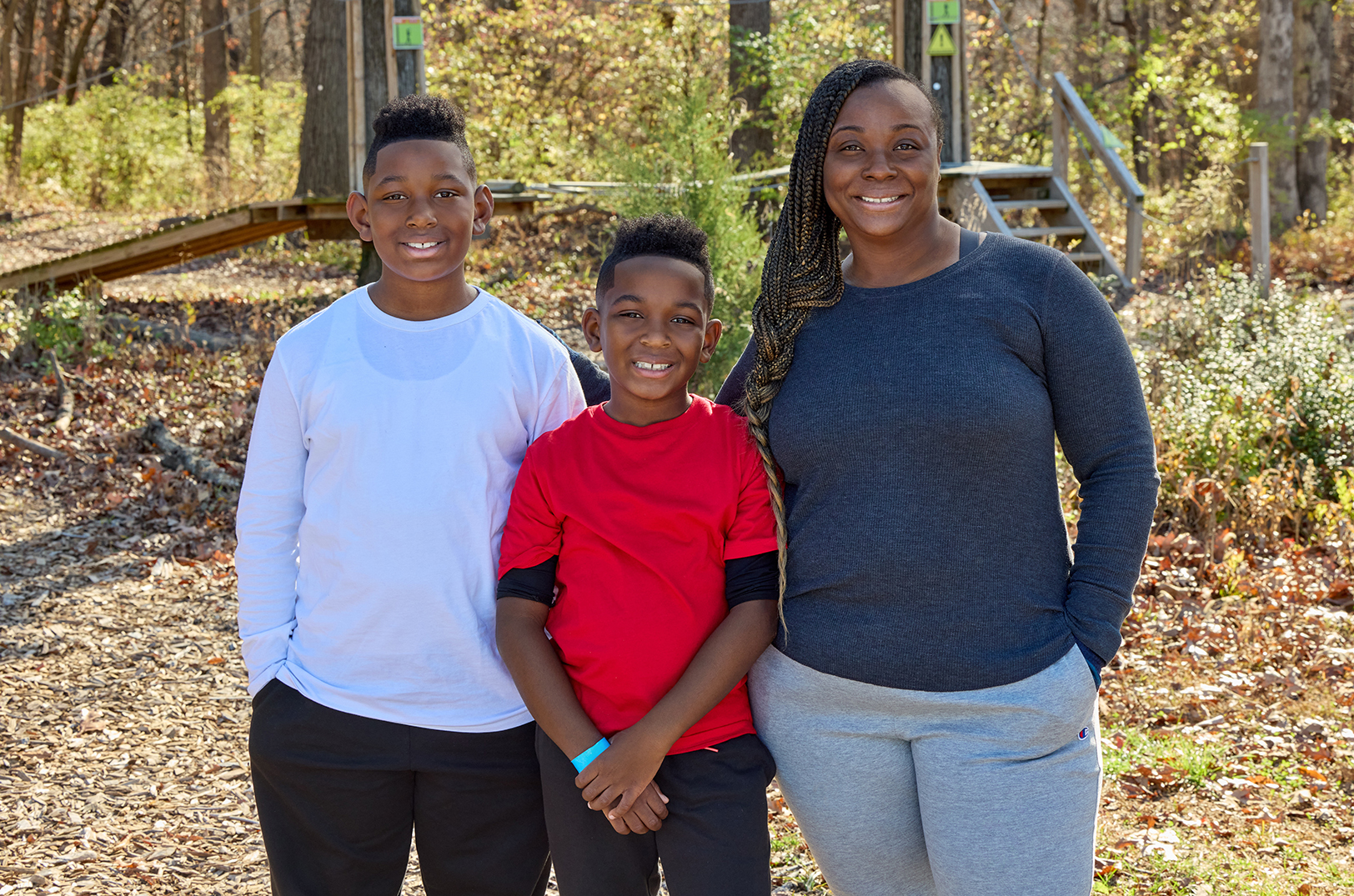 Rochelle Owens, right, with her sons Owen and Jacob during filming of “The Motherhood”; photo by Matt Hoover, Hallmark
