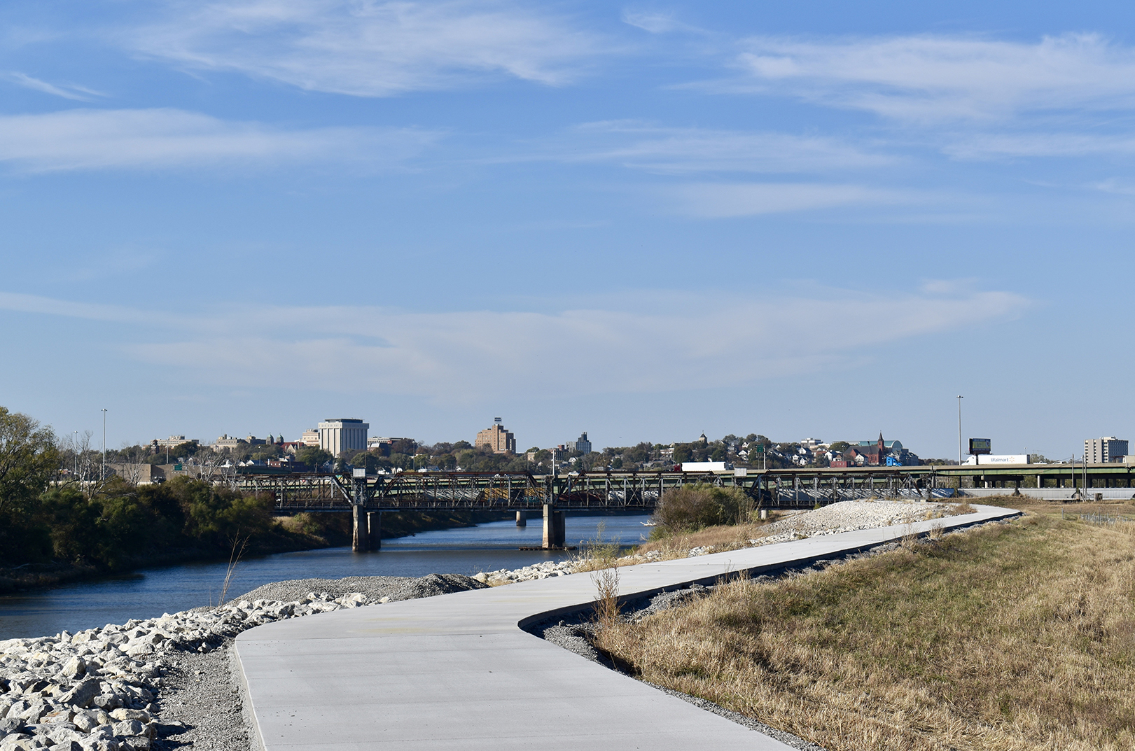 Levee trails along the Kansas River waterfront, near the Rock Island Bridge, November 2023; photo by Nikki Overfelt Chifalu, Startland News