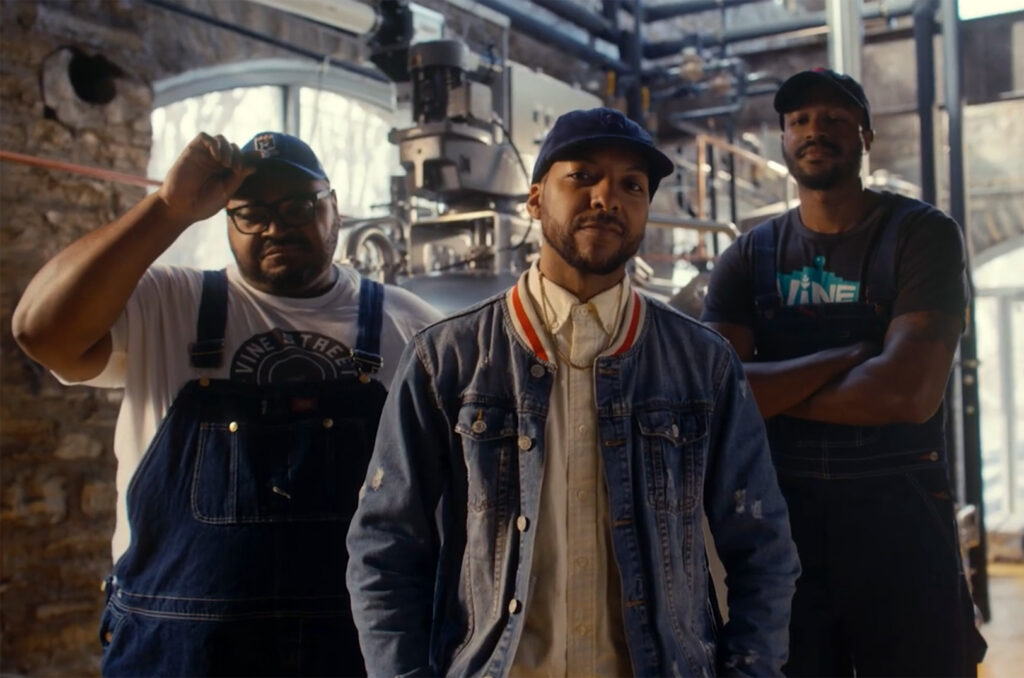 Woodie Bonds Jr., Kemet Coleman, and Elliott Ivory, Vine Street Brewing, in a still from the Royals “Welcome to the City” video