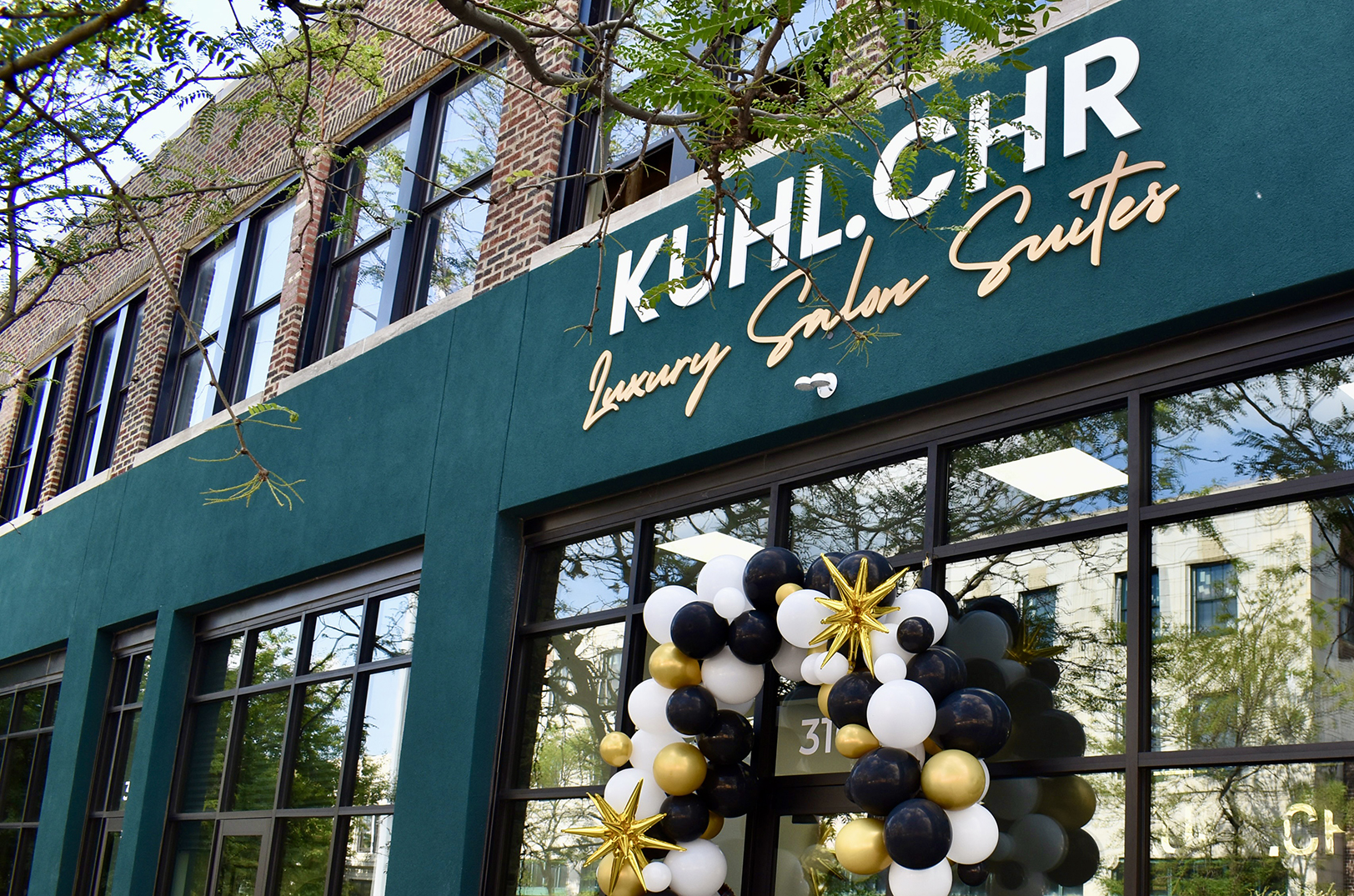 The front exterior of Kuhl.chr Luxury Salon Suites at the RS Impact Exchange retail hub; photo by Nikki Overfelt Chifalu, Startland News