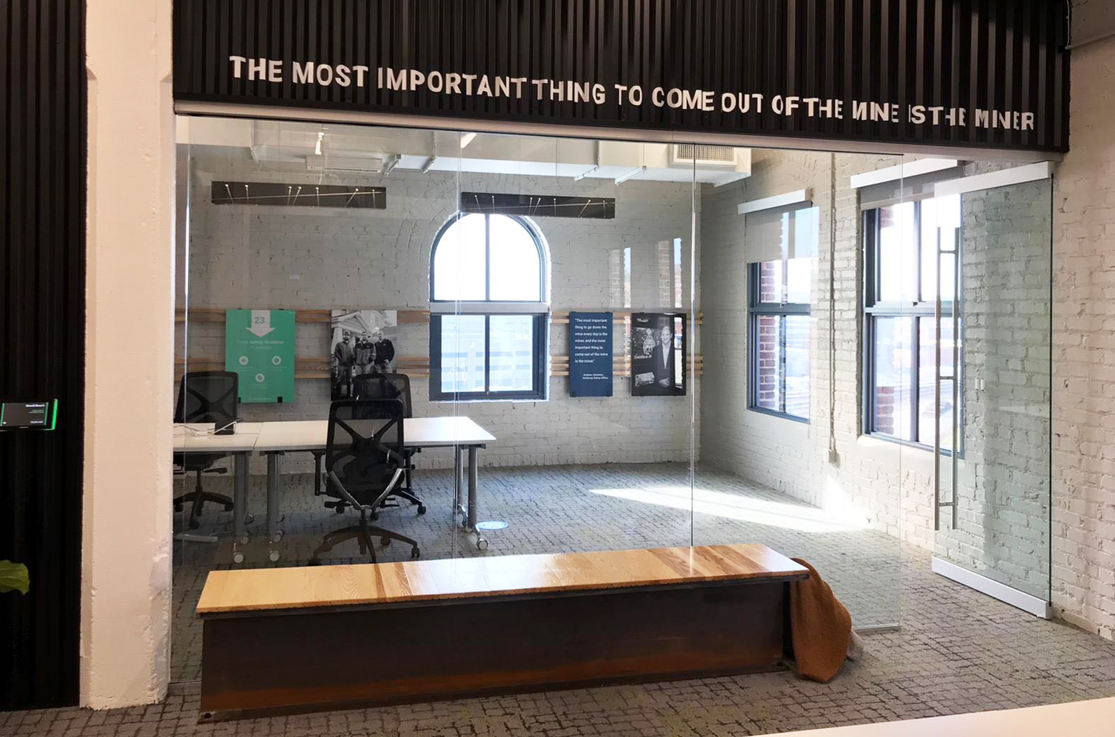“Every 15 seconds someone dies from a workplace-related injury or illness,” said Reed, standing in front of a wall reading, “The most important thing to come out of the mine is the miner.”