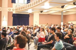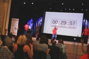 After some mixing and mingling, attendees were handed an official “ballot” on which they were instructed to share their names and organizations. A volunteer team — with representatives from all 11 coworking spaces in the alliance — funneled everyone into Plexpod’s recently renovated Medallion Theatre. There attendees were required to stay and cowork for 30 minutes, making the record official.
