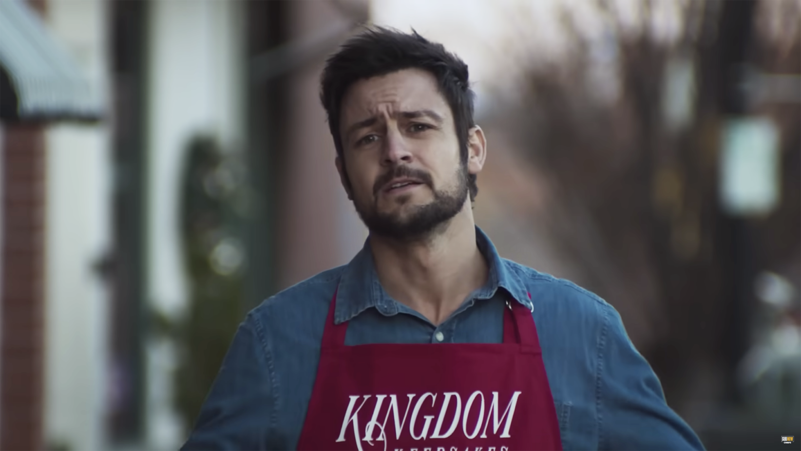 Actor Tyler Hynes in a pivot scene from “Falling for Football”; photo still courtesy of the Kansas City Chiefs