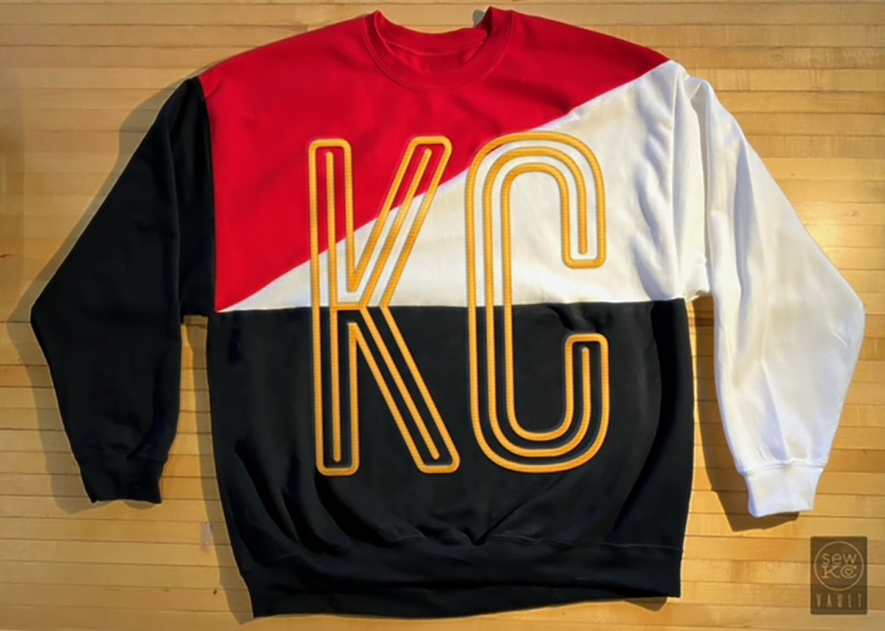 The couple behind Collective EX, sewKC, and HITIDES Coffee (all within their symbiotic studio space in the East Crossroads) recently helped design several items featured in the sets of the Kansas City Chiefs’ “Falling for Football” mock trailer — released for the playoffs; now they’re launching new colorblock KC sweatshirts with a vintage feel just in time for another history-making Super Bowl run.