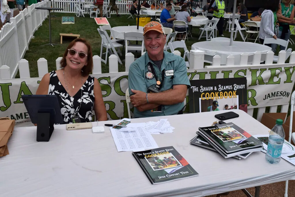 Kansas City Irish Fest volunteers sell copies of “The Shaun & Seamus Brady Cookbook” to support the Brady family; photo by Thomas White, The Kansas City Beacon