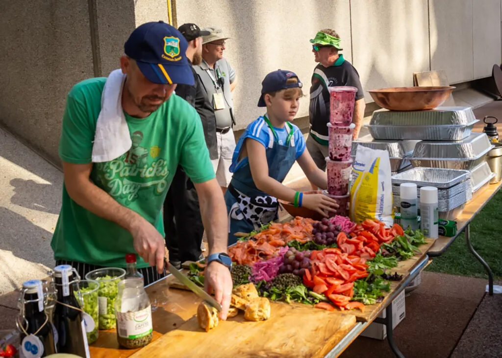 Chef Shaun Brady and his son Seamus work side by side preparing fresh ingredients for the 2023 Kansas City Irish Fest Brunch; photo courtesy of Jim Nimmo
