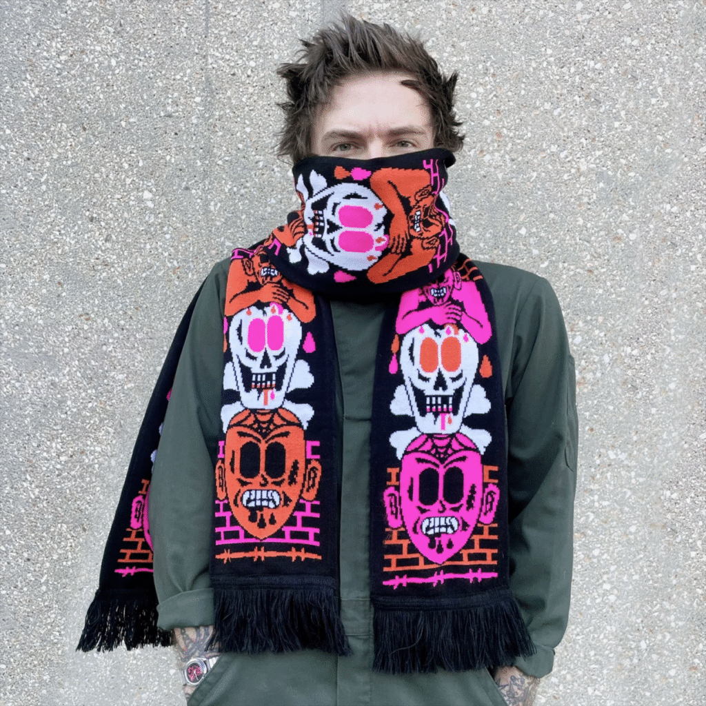 This limited edition scarf designed by the West Bottoms-based artist will keep your body warm but maybe haunt your punk soul.