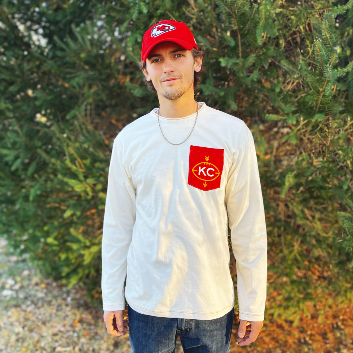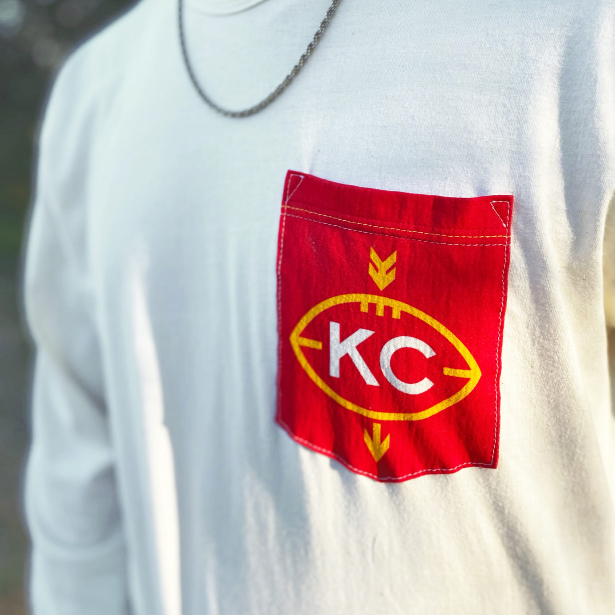 This is a perfect gift for the fan who just wants a pocket-sized amount of Chiefs flair. The triple-stitched subtle yet stylish tees are made of cotton grown and milled in the U.S. and designed and sewn right here in KC. If you’re looking for a little more warmth, long-sleeved tees will be available online by next week.