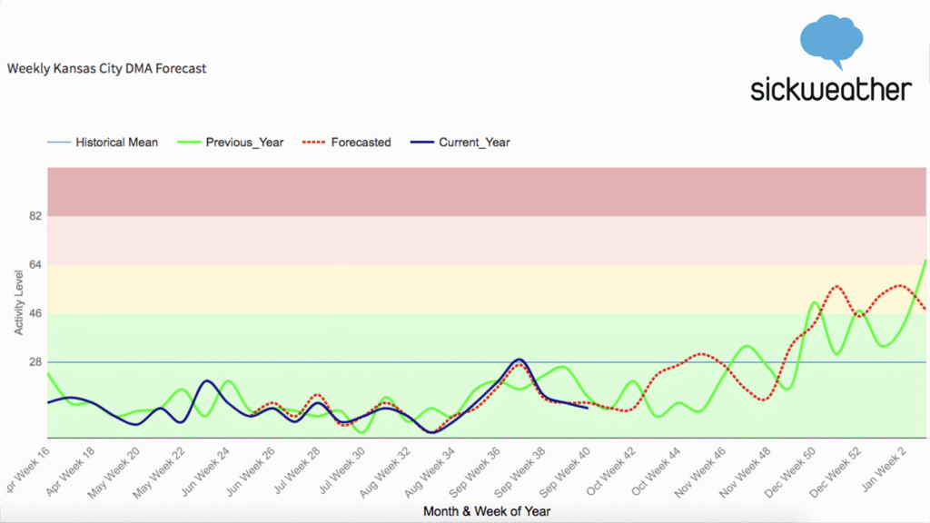 Sickweather’s illness forecasting technology points to a seasonal uptick in influenza rates for Kansas City, said Laurel Edelman, noting a particularly rough patch expected at the end of year.
