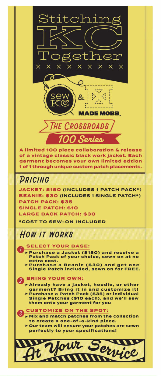 For those who can’t make it on First Friday, the remaining jackets from the 100-piece run will be available to purchase at MADE MOBB, they noted. Customers can still design their patch layout, then the jacket will be sent over to SewKC to finish the customization.