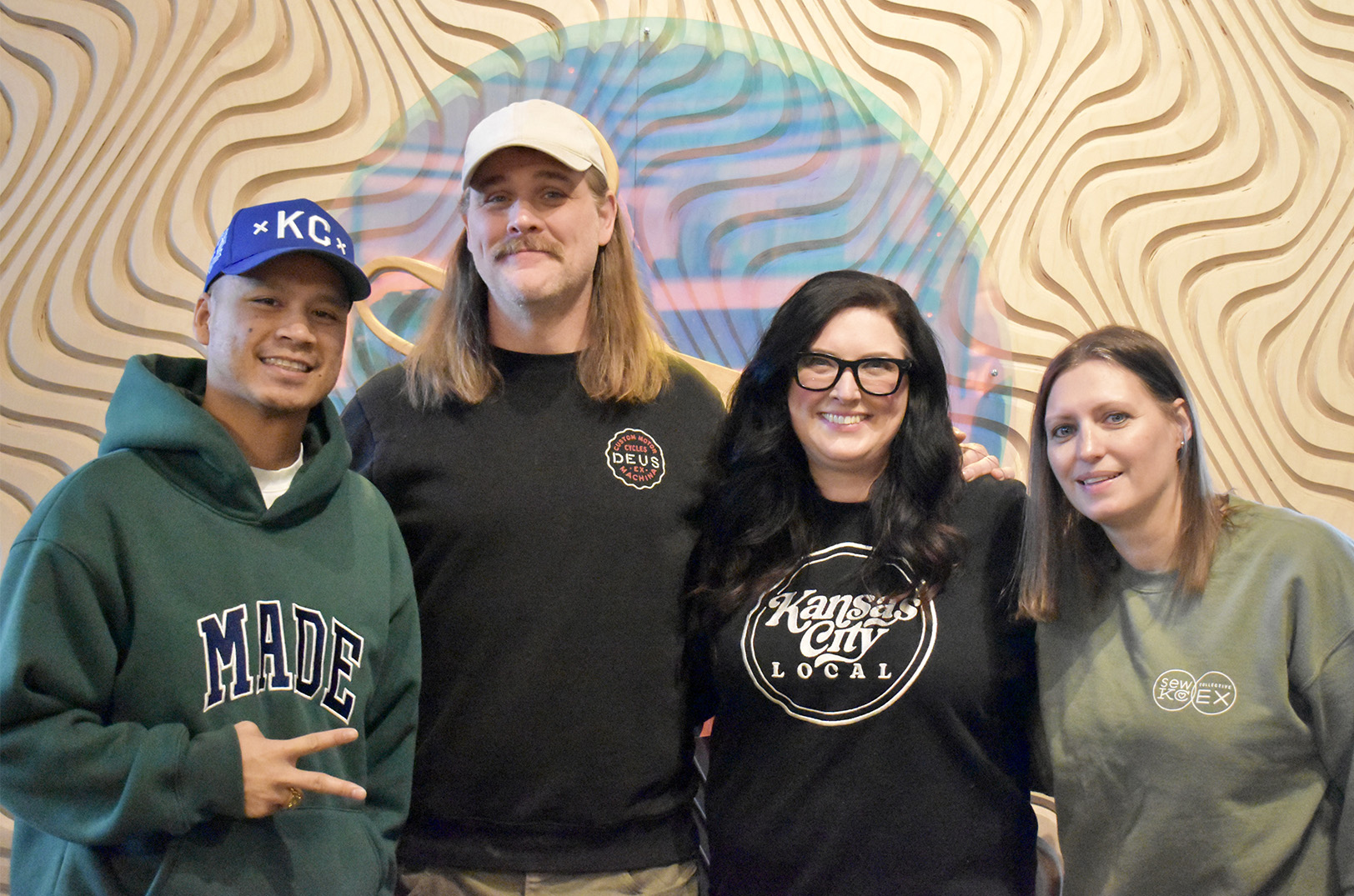 Jesse Phouanphet, MADE MOBB, with Johnny and Michele Dawbarn and Kristina Atagi, SewKC; photo by Nikki Overfelt Chifalu, Startland News