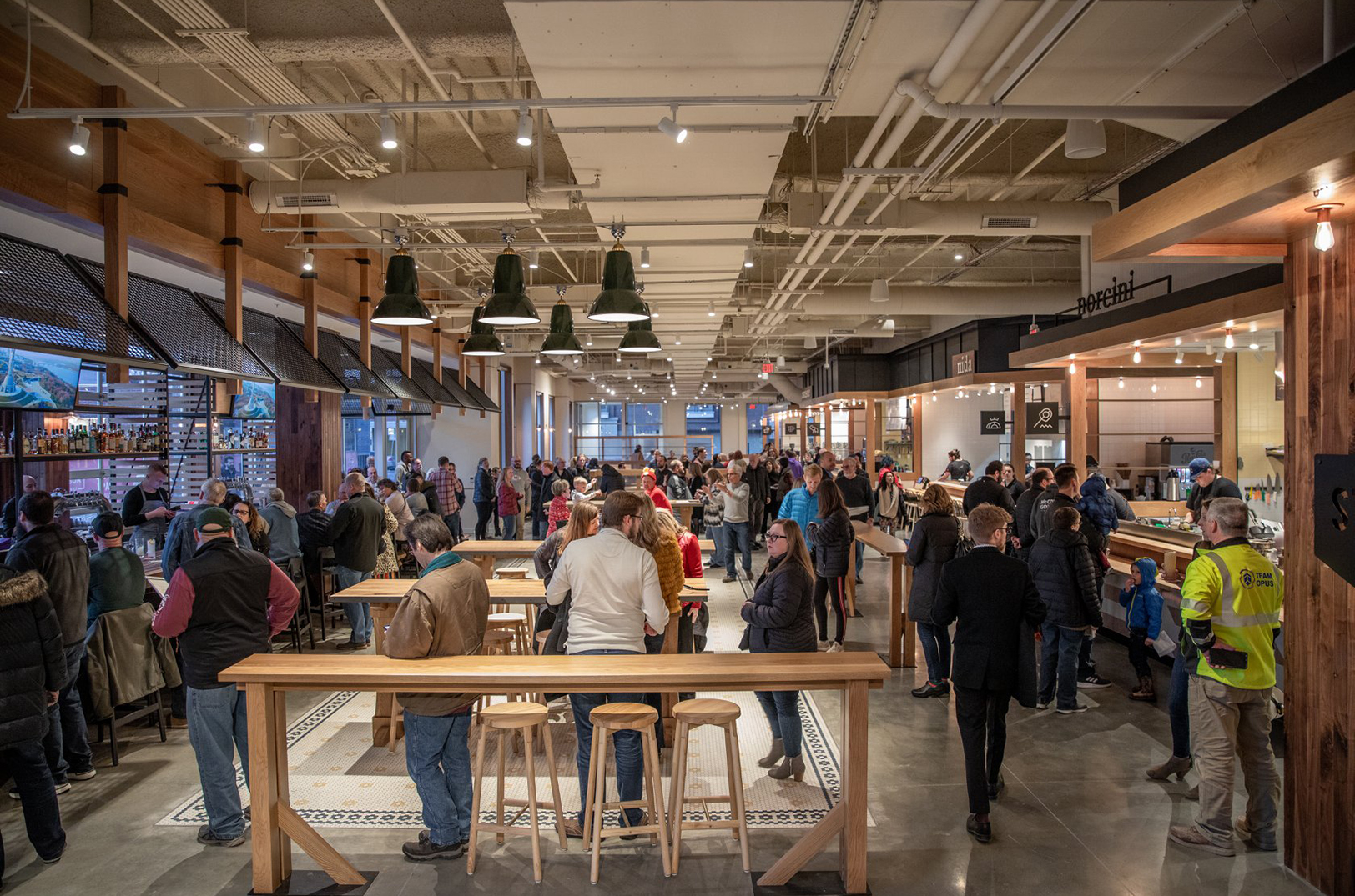 Initially planned as a 13,500-square-foot food hall with five chef concepts, designs were scaled back amid the building’s renovation, as well as shifting trends and priorities during the pandemic, developers told Startland News previously.