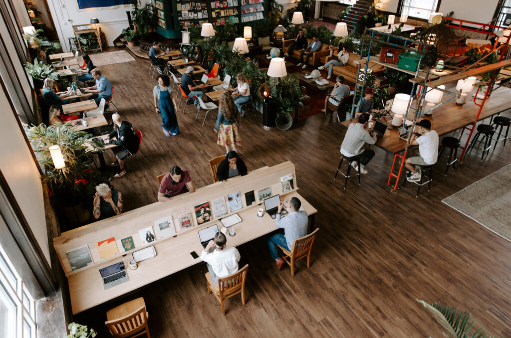 “We’ll combine a bustling cafe area with some heads-down, no-calls, no-meetings, no-talking library space, as well as bookable meeting rooms, phone booths, and nonstop locally roasted coffee and tea — all included in the membership,” Hinman said.