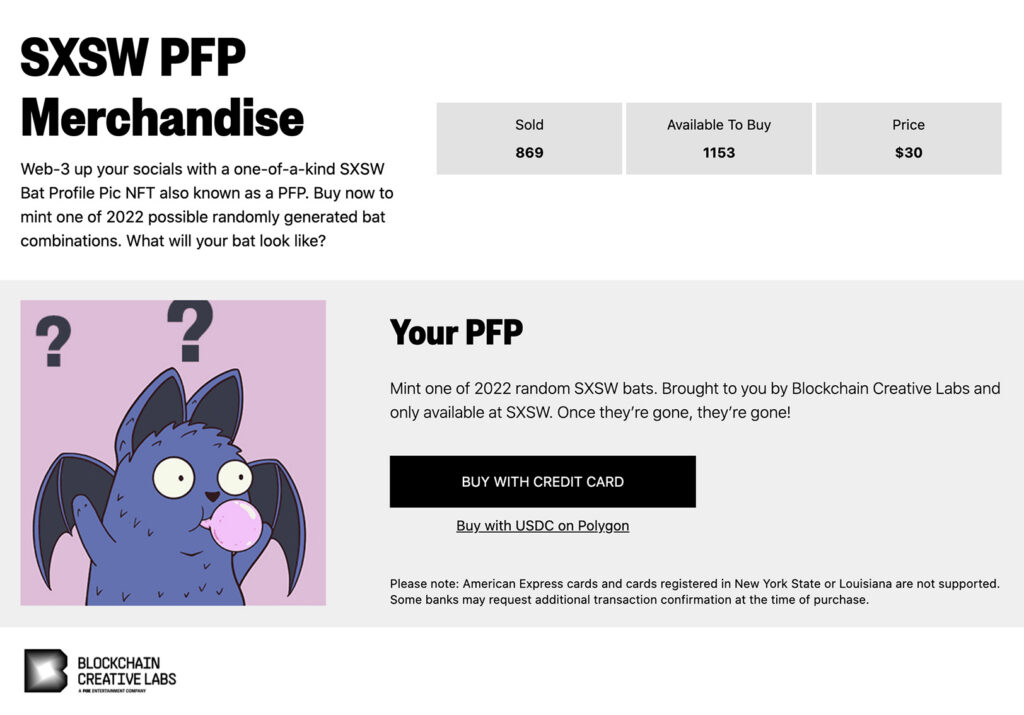 Other promotions — from in-person NFT activation events and an official SXSW NFT gallery to NFT giveaways tied to festival movie premieres and collectible die-cut stickers hidden with QR codes throughout the conference — kept the tradable digital art front and center at SXSW.