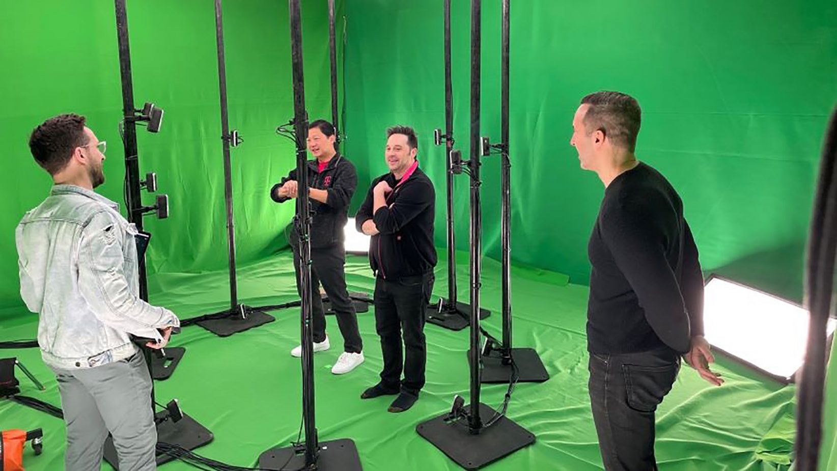 John Saw, T-Mobile’s executive vice president of advanced and emerging technologies, (second from left) and team in a studio surrounded by cameras capturing volumetric images to create holograms displayed on mobile devices. (Courtesy | T-Mobile)
