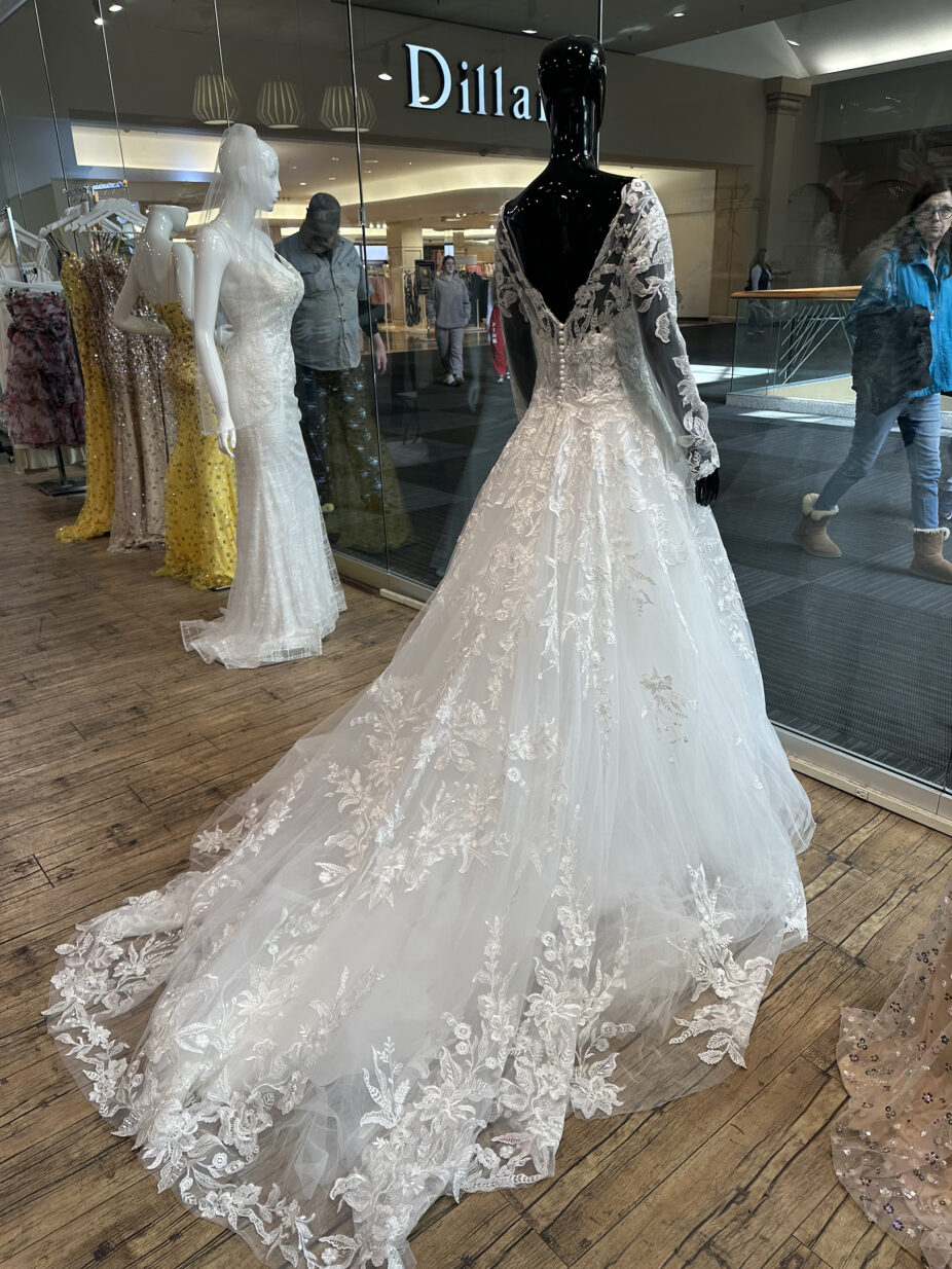 Several customers then headed over to Nzioki Hult’s new Tabu Formal & Bridal next door, where one bride-to-be was at a three-sided mirror — checking her white satin, off-the-shoulder mermaid gown at all angles. Other consumers checked out party dresses.