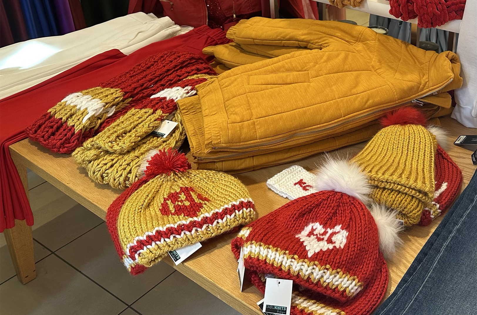 On a Saturday this month, customers ranged from those just seeing what was new to those specifically searching out yellow bridesmaids dresses. But nearly all stopped to take in the red, yellow and white knitwear on the front table — in honor of the Kansas City Chiefs — and oohed-and-aahed over the oh-so-soft material.