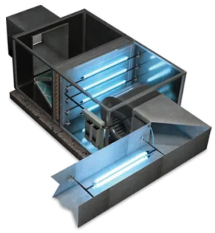 “[There are four types of ultraviolet light]. The really potent UVC — which is 250 to 260 nanometers in wavelength — that’s the really harsh stuff. That’s the kind of stuff that will burn your skin, burn the cornea of your eyes. It’s lethal,” he explained, noting that by hiding the powerful light inside air ducts it creates a safe barrier that can’t harm humans and annihilates airborne pathogens pushed through the air in a way that’s chemical-free.