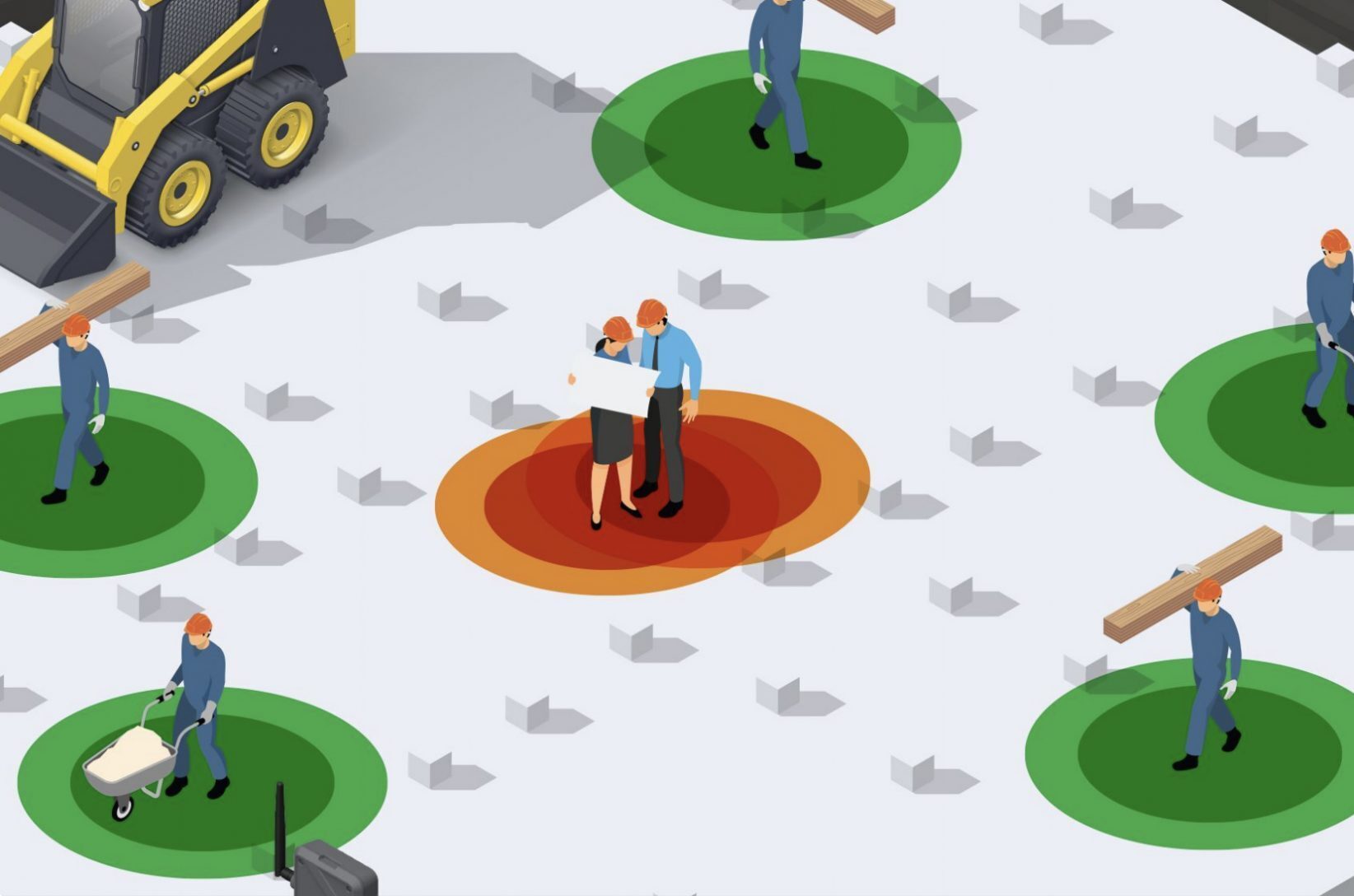 Full product capabilities include credentialed worker identification; emergency SOS beaconing; control site access, defined entry and exclusion zones within the job site; the ability to assign workgroups, privileges and certifications for individuals; the ability to assign personal space requirements and receive alerts when cross-contamination occurs; rugged, site-ready construction; and RFID compatibility with existing access points.