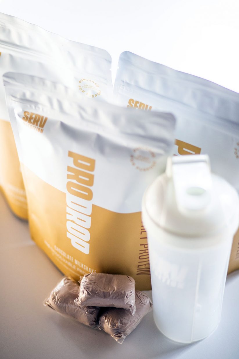 “I was doing some laundry and threw a Tide Pod in after my workout, then ran upstairs to make a protein shake and I spilled my protein all over the counter,” said Wilcox, co-founder of SERV Nutrition, explaining the inspiration for ProDrop.