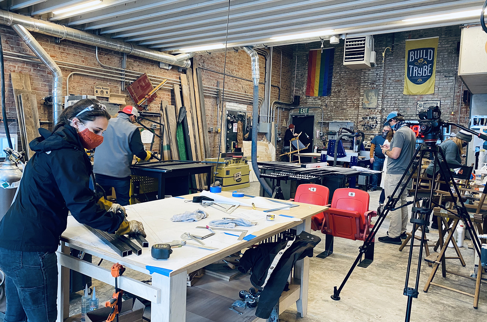 Filming for the YouTube series episode culminated this weekend within the Maker Village community woodworking and metalworking shop in Midtown Kansas City. Operation Breakthrough representatives and students were on hand to participate in the project.