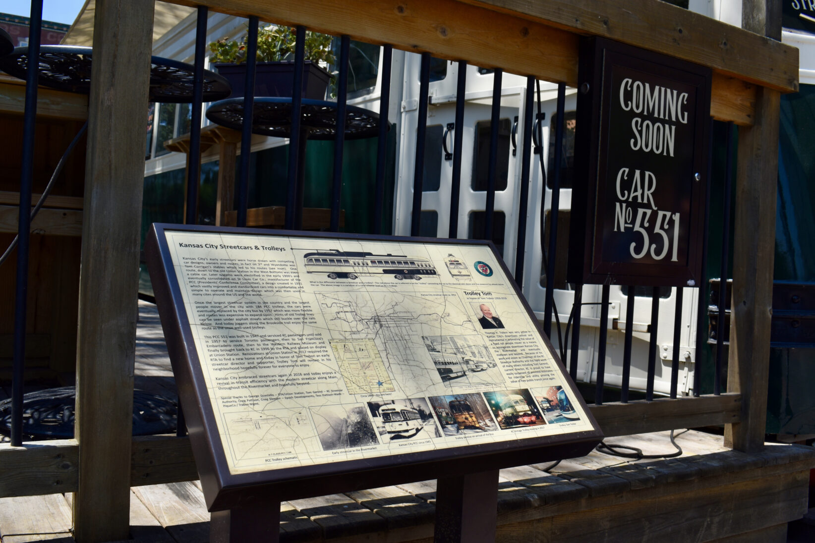 An informational kiosk shares the story of the historic “Trolley Tom” in Kansas City’s River Market; photo by Nikki Overfelt Chifalu, Startland News