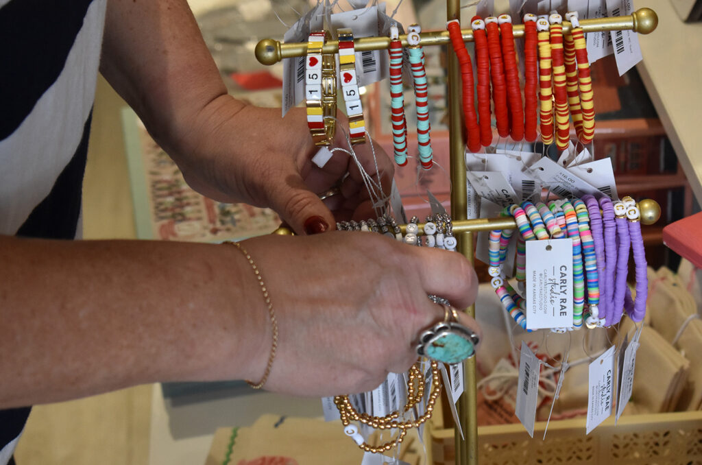 Katie Mabry van Dieren adjusts products between customers at Shop Local KC’s Brookside Plaza location; photo by Tommy Felts, Startland News