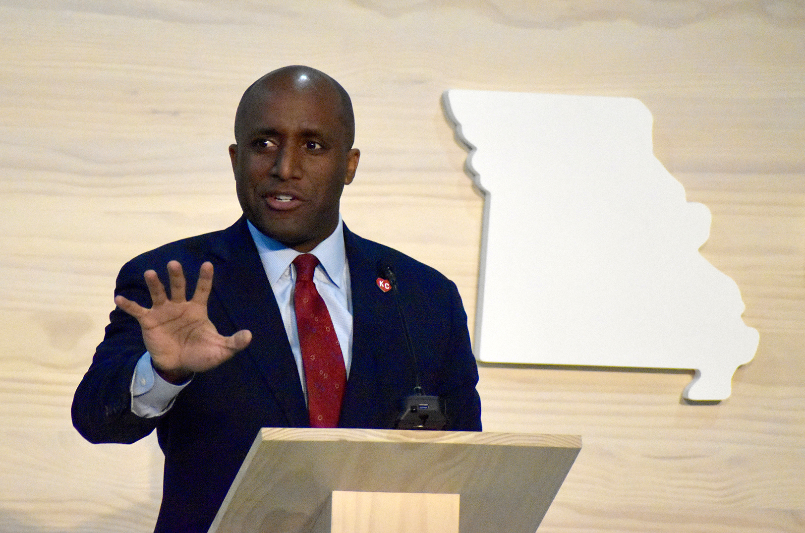 KCMO Mayor Quinton Lucas speaking at an announcement event for Google’s new data center; photo by Nikki Overfelt Chifalu, Startland News