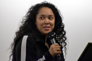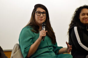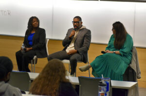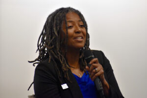 Rickey Leathers, Savvy Salon KC, speaks during a founder panel conversation at UMKC’s First Tuesdays event; photo by Nikki Overfelt Chifalu, Startland News