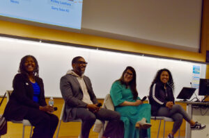 Before the Side Hustle Challenge, Joel Barrett with the Missouri Small Business Development Center at UMKC hosted a panel with founders Ally Letsky (May Day Paper and Post), Rickey Leathers (Savvy Salon KC), Antoinette Redmond (Neuru), and LaTonya Scott (Blue Chip Roofing and Waterproofing), discussing the challenges of entrepreneurship and the importance of taking advantage of resources for small businesses.