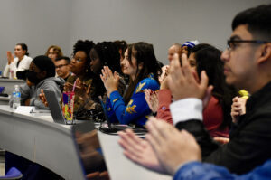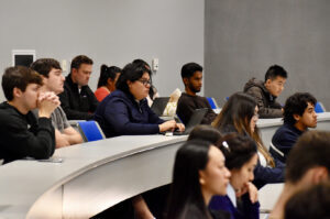 To enter the Side Hustle Challenge, students each created a social media video of no more than two-minutes’-worth of content explaining their real-world businesses. Eight finalists were selected from 32 entries by faculty and those eight videos were shown to their peers on Tuesday. Three student winners were selected in real time by popular vote.