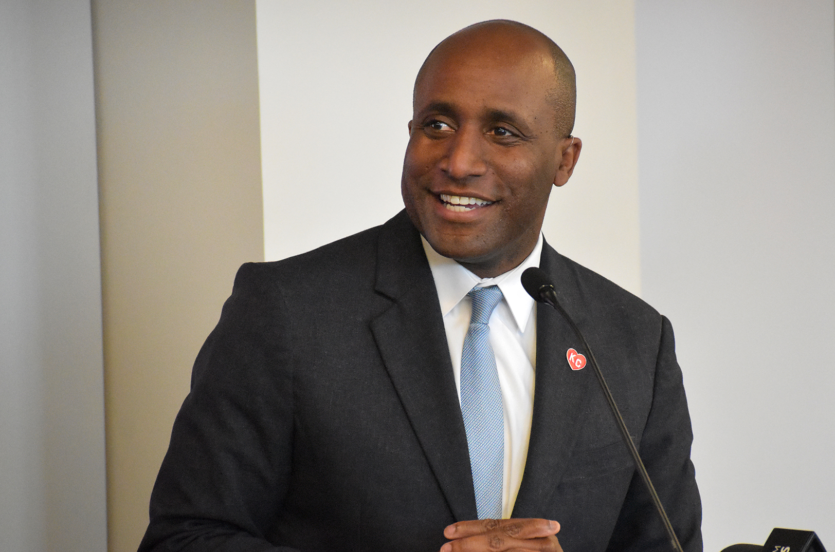 Mayor Quinton Lucas speaks during a launch event in May for DoorDash’s Kansas City Accelerator for Local Restaurants program; photo by Taylor Wilmore, Startland News