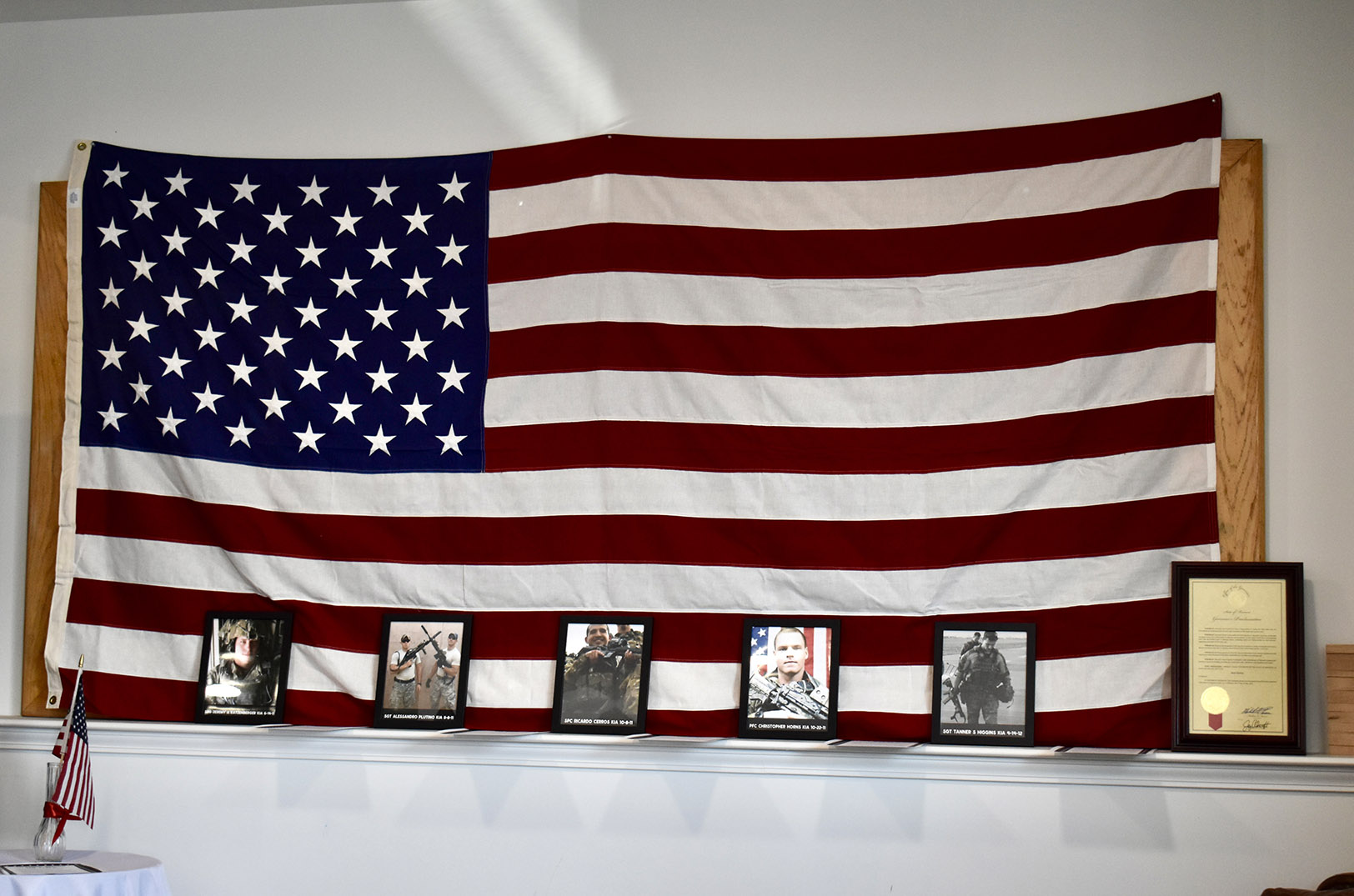 Photos of fallen service members at KC Cattle Company’s Parkville store; photo by Nikki Overfelt Chifalu, Startland News