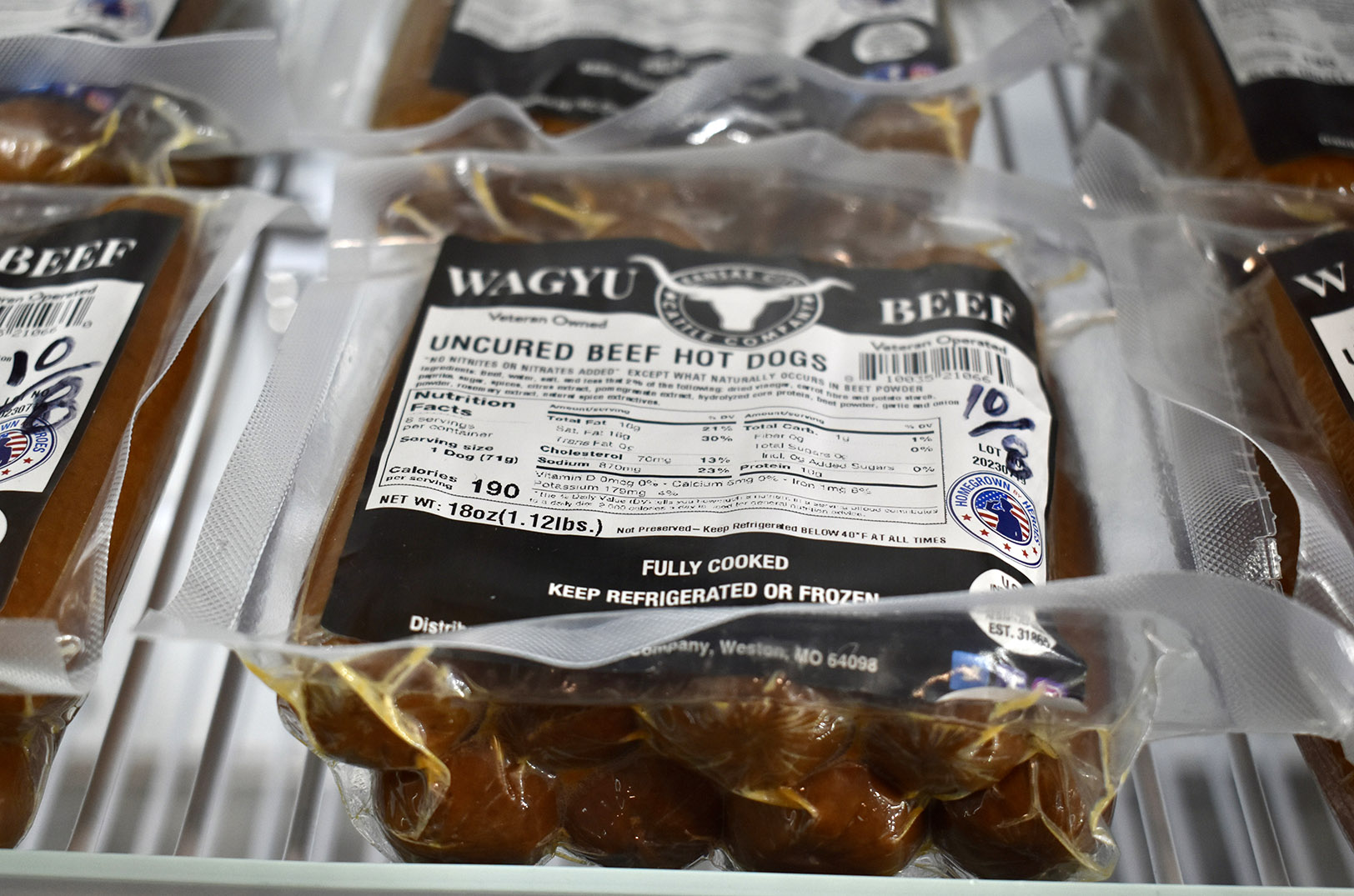 Packaging for the Wagyu beef hot dogs at KC Cattle Company’s Parkville store; photo by Nikki Overfelt Chifalu, Startland News