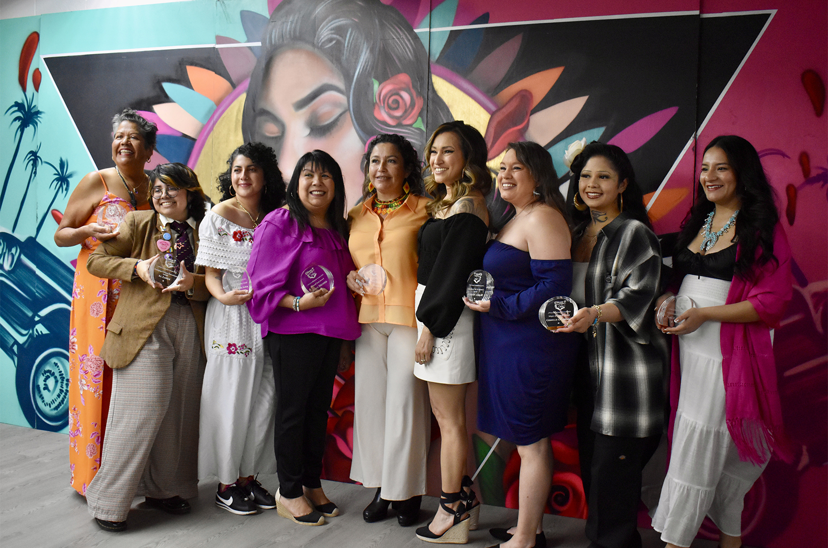 Winners of the first-ever ¡Viva La Chicana! Awards stand with Deanna Muñoz at the Chicano Center for the Arts; photo by Nikki Overfelt Chifalu, Startland News
