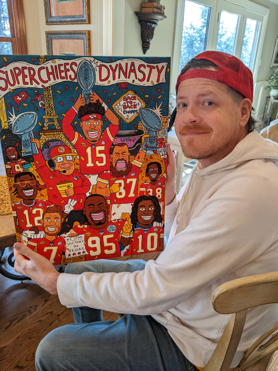 “Some people say my style is very ‘Where’s Waldo?’” said Keith. “I try not to hide too much in my paintings, but sometimes I add little things like ‘Find the (Patrick) Mahomes’ and ‘Find the Super Bowl trophy’ and stuff like that.”