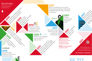 The organization made 9,425 connections via its hotline and email in 2017 (up by more than 2,000 from 2016), according the report, and 70 percent of companies that received funding in 2017 were assisted in some manner by the KCSourceLink network.