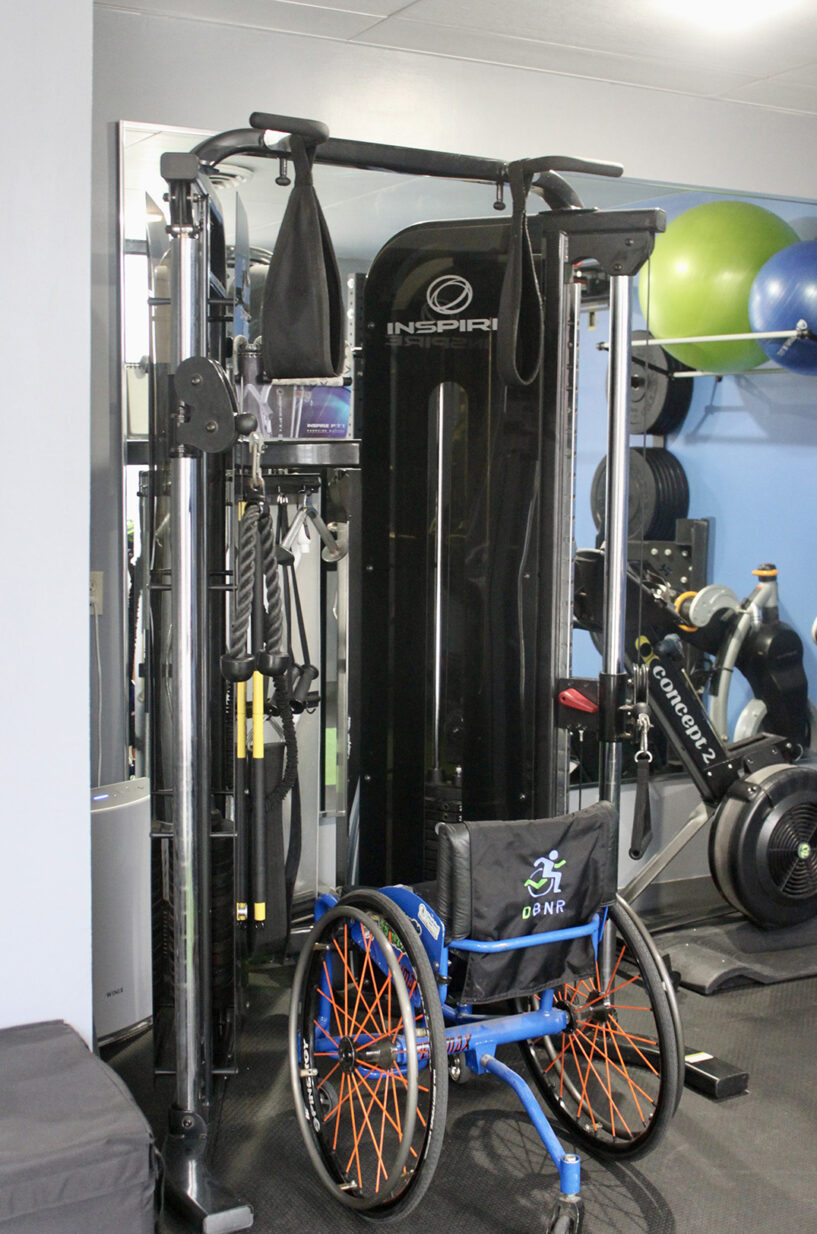 The new gym provides a variety of accessible equipment, including free weights, squat rack, adjustable pull-up bar, jump ropes for people in wheelchairs and with limb differences, lap mats, and cardio equipment that can be adapted to individual users, Hamilton said. The DBNR team also had the space renovated to widen the doors and install an automatic door opener and automatic devices in the bathroom.