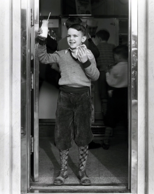 Young boy in door of White Castle restaurant. Photo courtesy of White Castle System, Inc./Ohio History Connection