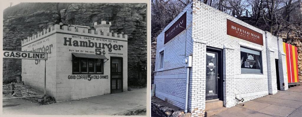 Buffalo Mane at 7th St. and Grand Blvd. was once the location of a White Castle restaurant. Photos courtesy of Ohio History Connection and Carlos Moreno, KCUR