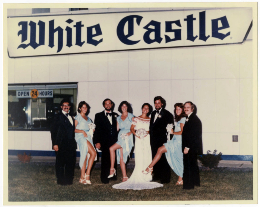 A wedding party poses for a picture in front of a White Castle restaurant. Photo courtesy of White Castle System, Inc./Ohio History Connection