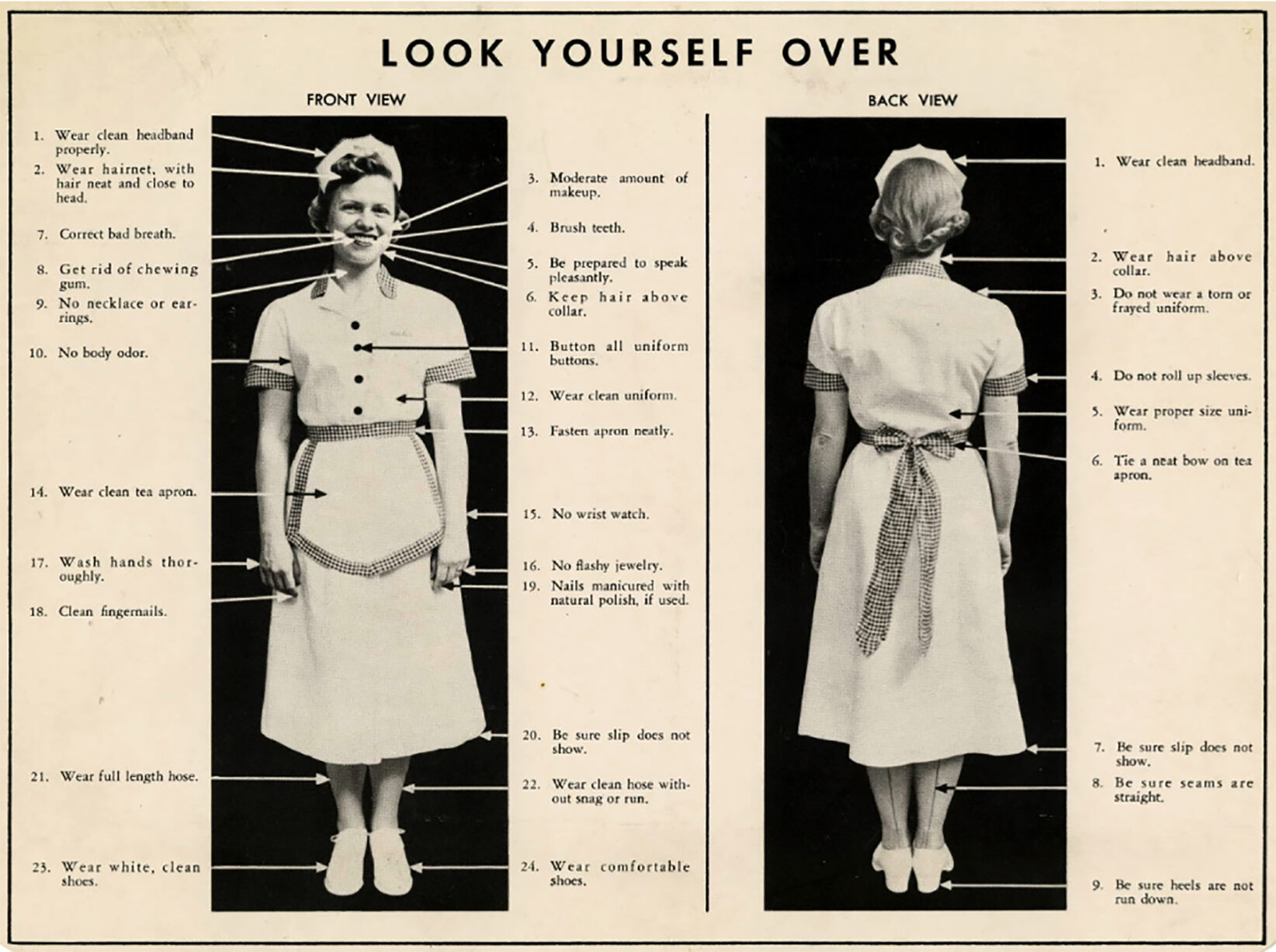 Chart titled “Look Yourself Over” created by White Castle Systems, Inc., giving instructions to female employees on how they should be dressed and groomed at work, ca. 1930-1949. Photo courtesy of White Castle System, Inc./Ohio History Connection