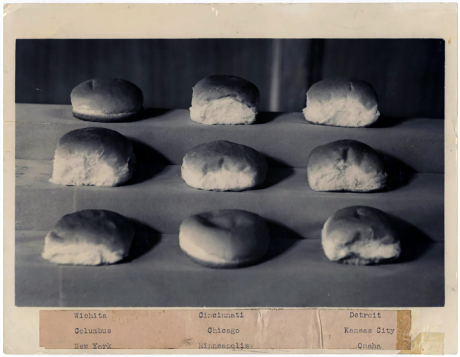 White Castle buns from various cities. Photo courtesy of White Castle System, Inc./Ohio History Connection