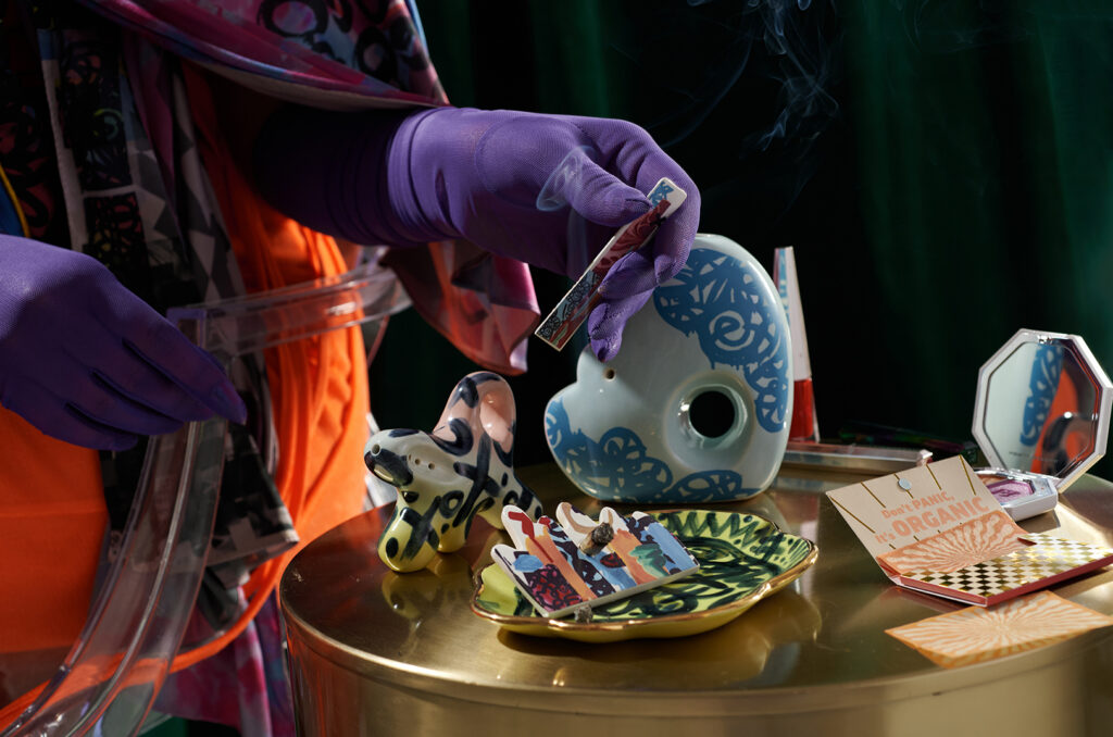 This isn’t Manney’s first off-the-runway collaboration — she crafted chicken footstools with City Girl Farm in 2021 — but this is the first one that she said she is learning to navigate the fine lines of cleverly promoting cannabis accessories on social media and not getting shut down.