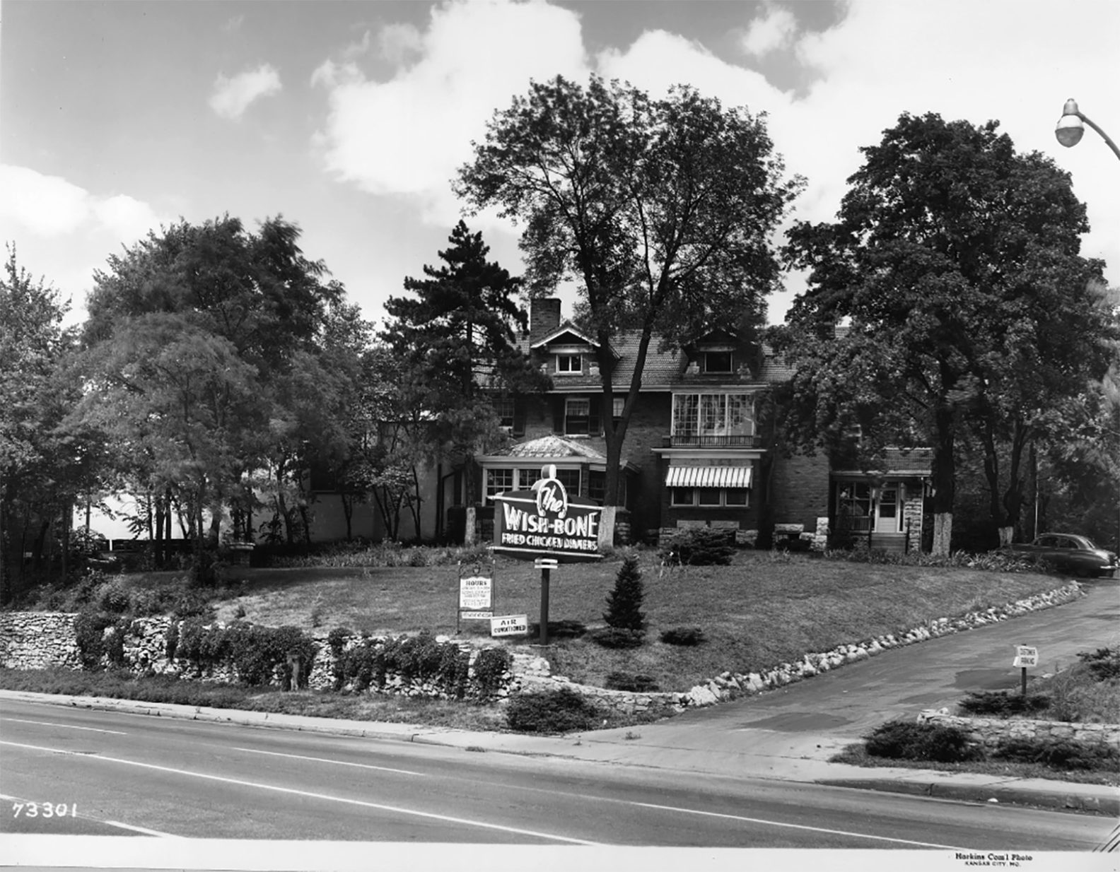 A 1952 photograph of the Wishbone Restaurant located at 4455 Main Street in Kansas City, Missouri; Robert Askren Photograph Collection/Missouri Valley Special Collections, Kansas City Public Library