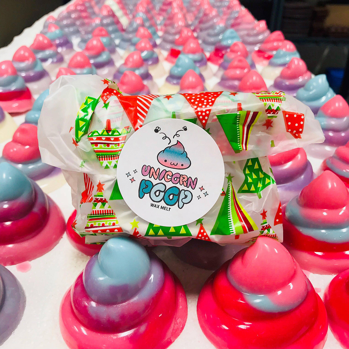 Produced and distributed in Olathe, the lineup of products also includes “Unicorn Berries,” as well as fragrant room sprays, poop-shaped wax lumps that can be cut up into smaller melts, and a No. 1 seller called “Fuck Anxiety,” Love said.